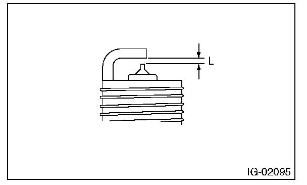 3. Using a nylon brush, etc., clean and remove the carbon or oxide deposits from the spark plug. If deposits are too stubborn, replace the spark plugs. After cleaning the spark plugs, check the spark plug gap "L" using a gap gauge. If it is not within the standard, replace the spark plug.