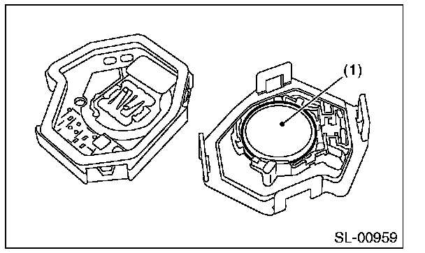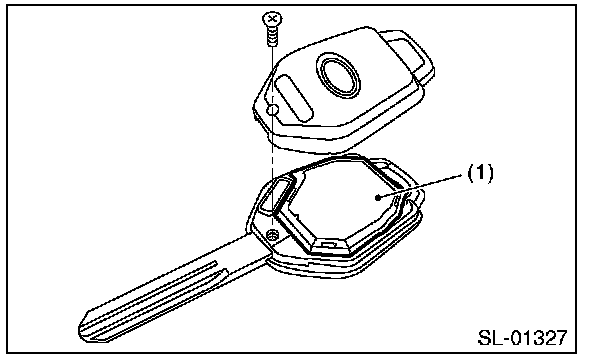 1. Disassemble the keyless transmitter, and take out the transmitter case (1).