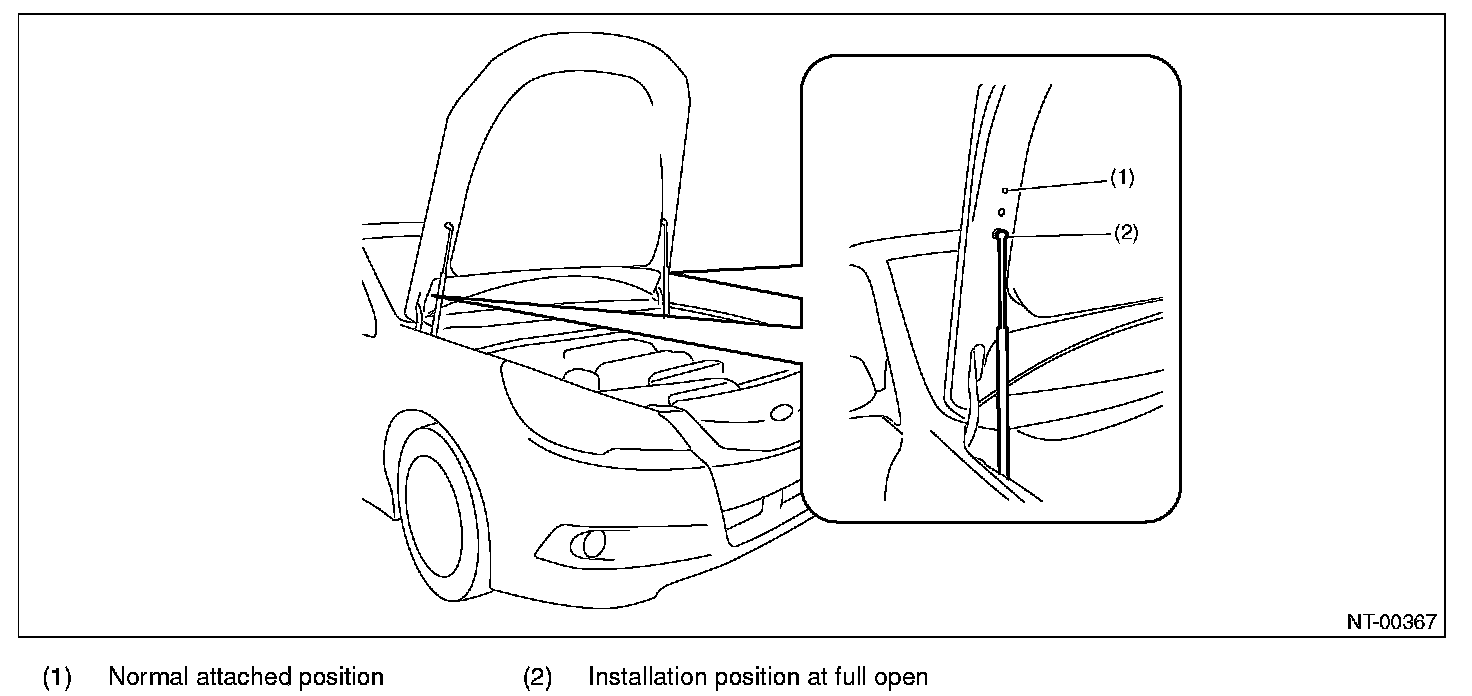 2. When wider hood opening is necessary, set the damper stay below as shown in the figure.