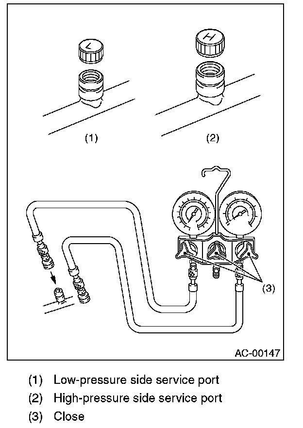 3. Make sure the valves on low/high pressure sides of manifold gauge set are fully closed.