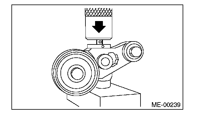 2) Check the belt tension pulley for smooth rotation. Replace the automatic belt tension adjuster assembly with a new part if abnormal noise or excessive play occurs.
