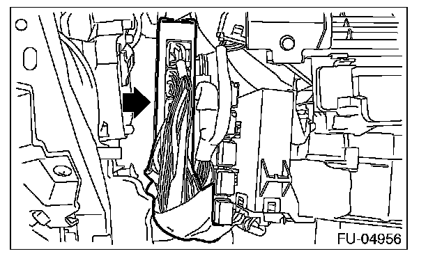 1. Remove the glove box lid assembly, glove box lower cover, instrument panel side cover RH and glove box back panel.