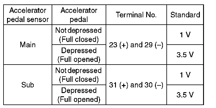 1. CHECK ACCELERATOR PEDAL SENSOR AREA (METHOD WITH CIRCUIT TESTER)
