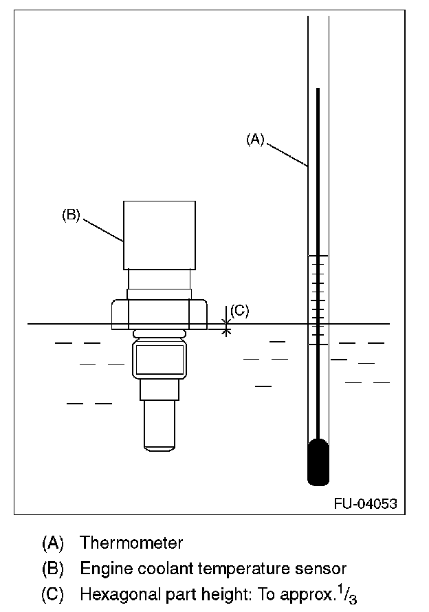 2. Immerse the engine coolant temperature sensor and a thermometer in water.