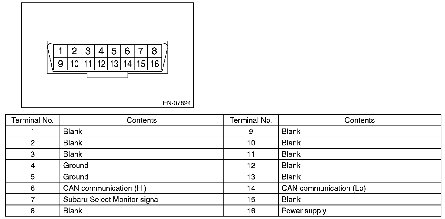CAUTION: Do not connect any scan tools other than Subaru Select Monitor or general scan tool because the circuit for Subaru Select Monitor may be damaged.