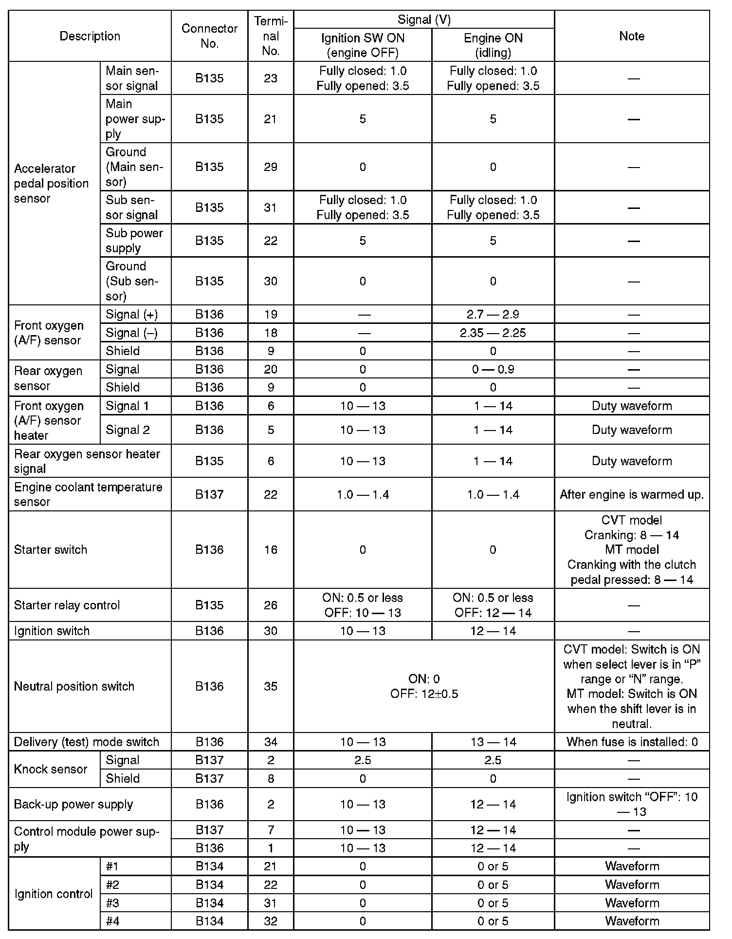 Engine Control Module (ECM) I/O Signal