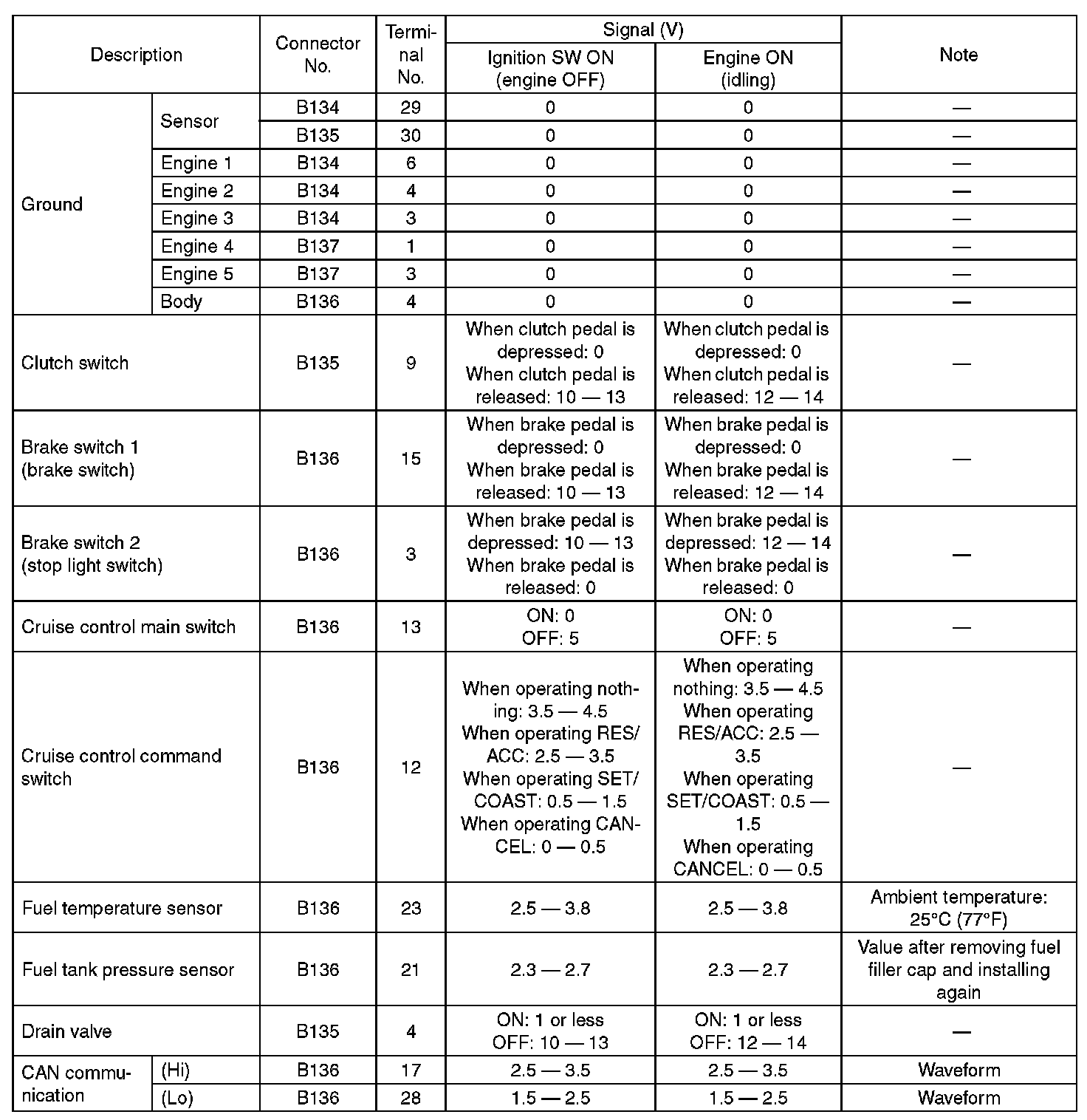 Pinout Values and Diagnostic Parameters