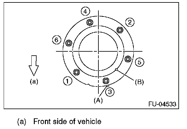- After tightening the bolts to the specified torque in the order indicated in the figure, install the fuel sub level sensor protector.
