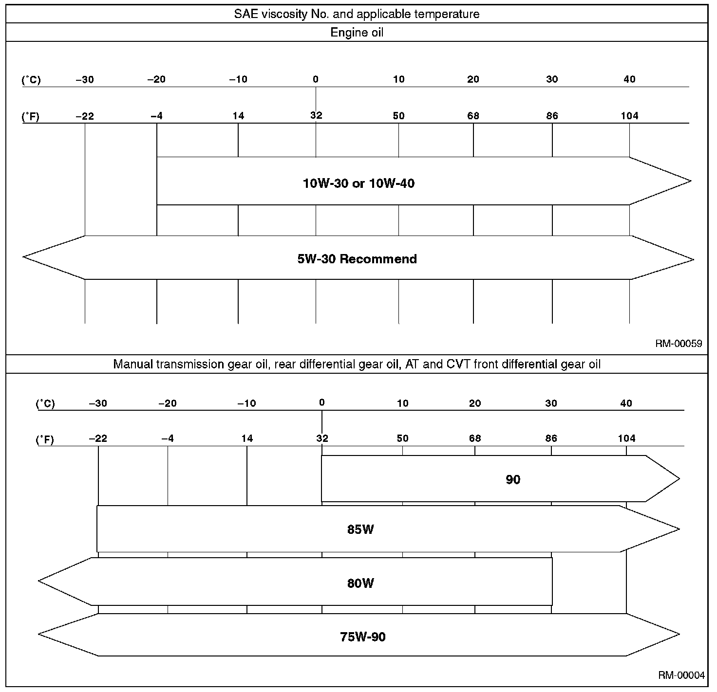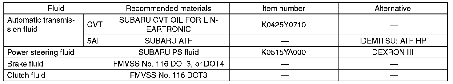 CAUTION: Be sure to use the recommended or equivalent ATF or CVTF. Using material except recommended one or substitute would cause trouble.