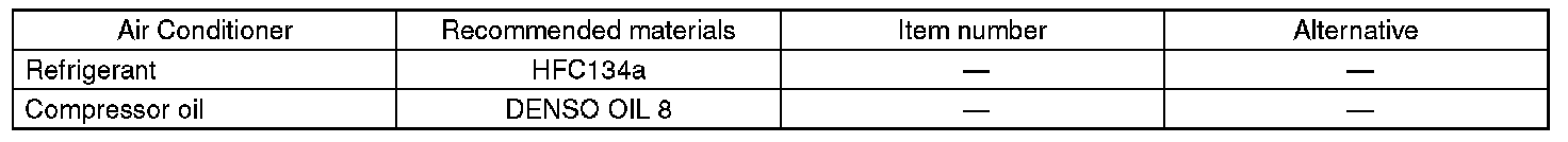 Standard air conditioners on Subaru vehicles use HFC134a refrigerant. Do not mix it with other refrigerants. Also, do not use any compressor oil other than DENSO OIL 8.