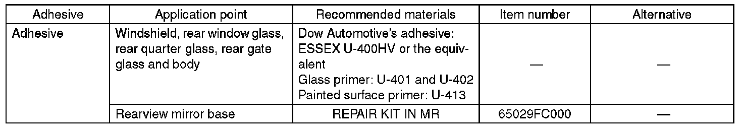 Use the adhesives shown in the table below, or equivalent.