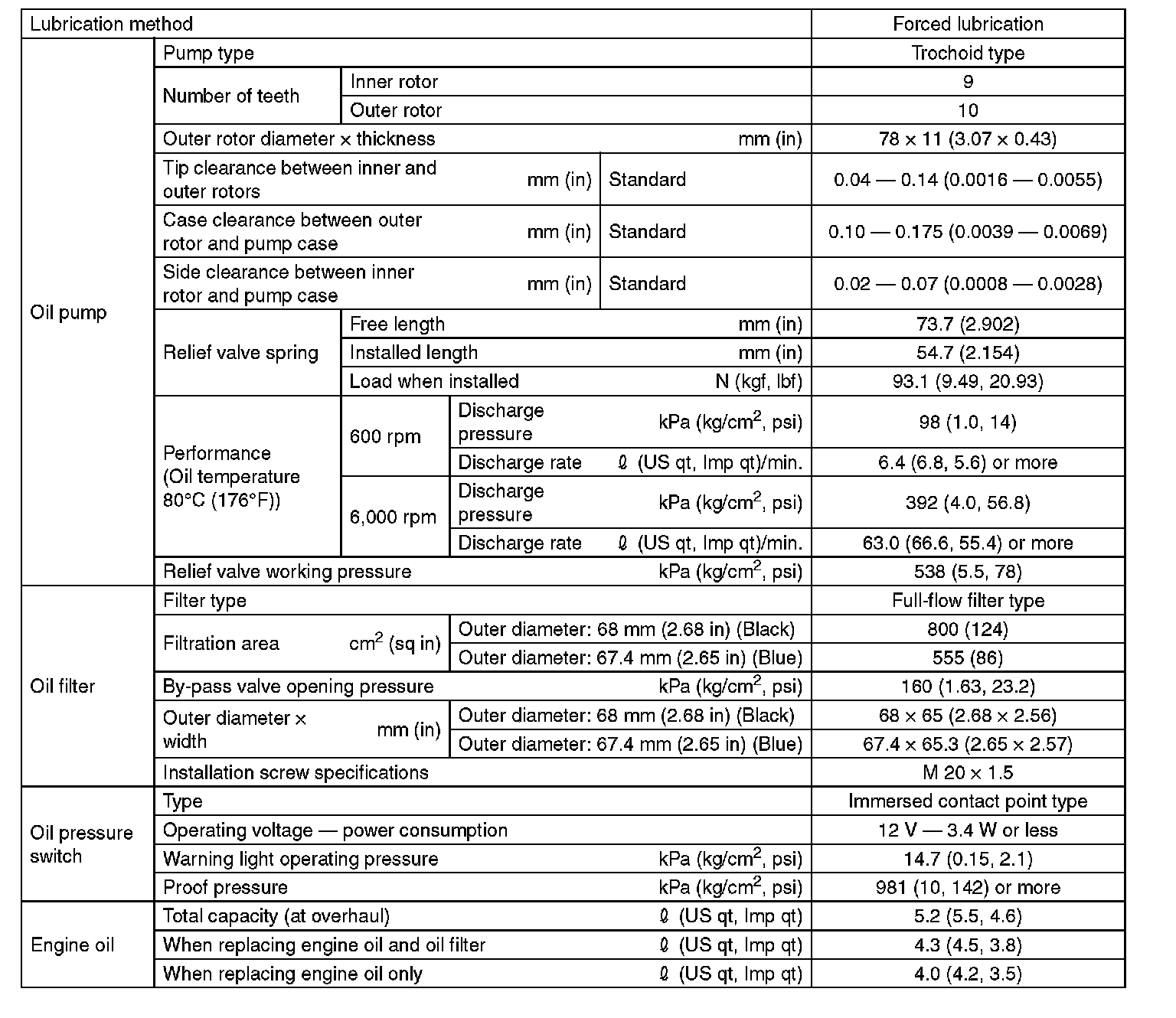 SPECIFICATION^ Non-turbo model