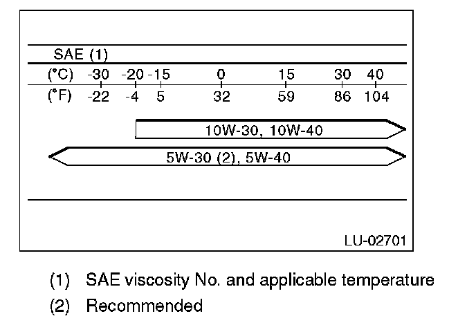 ^ If the vehicle is used in regions of high temperatures or in other severe environments, use oil with the viscosities shown below.