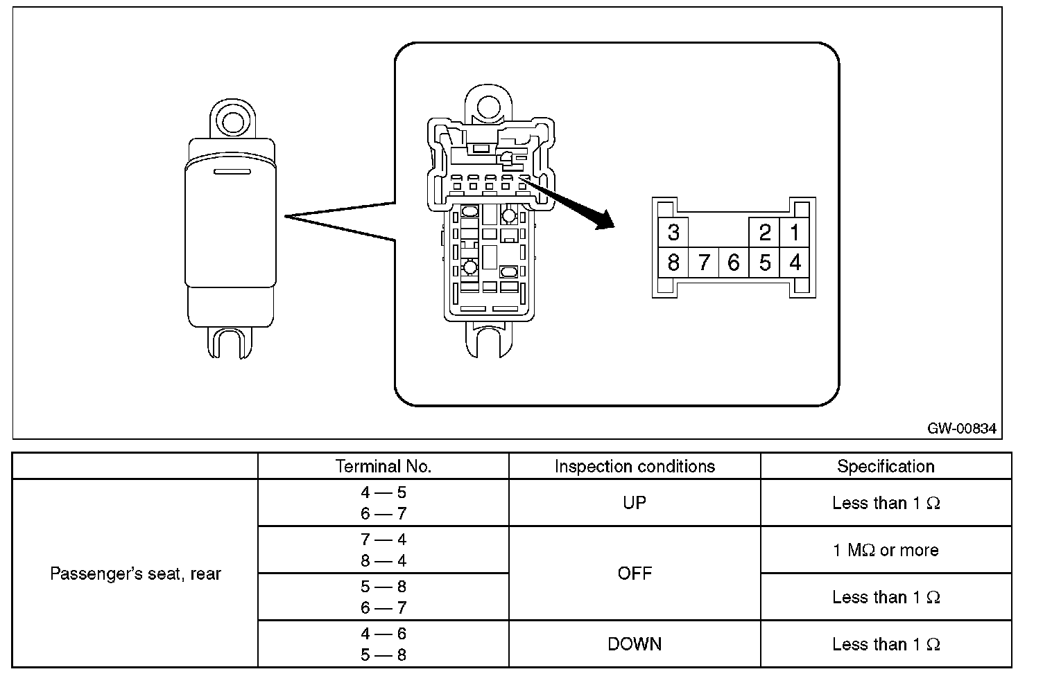 3. Replace the sub switch if the inspection result is not within the standard value.