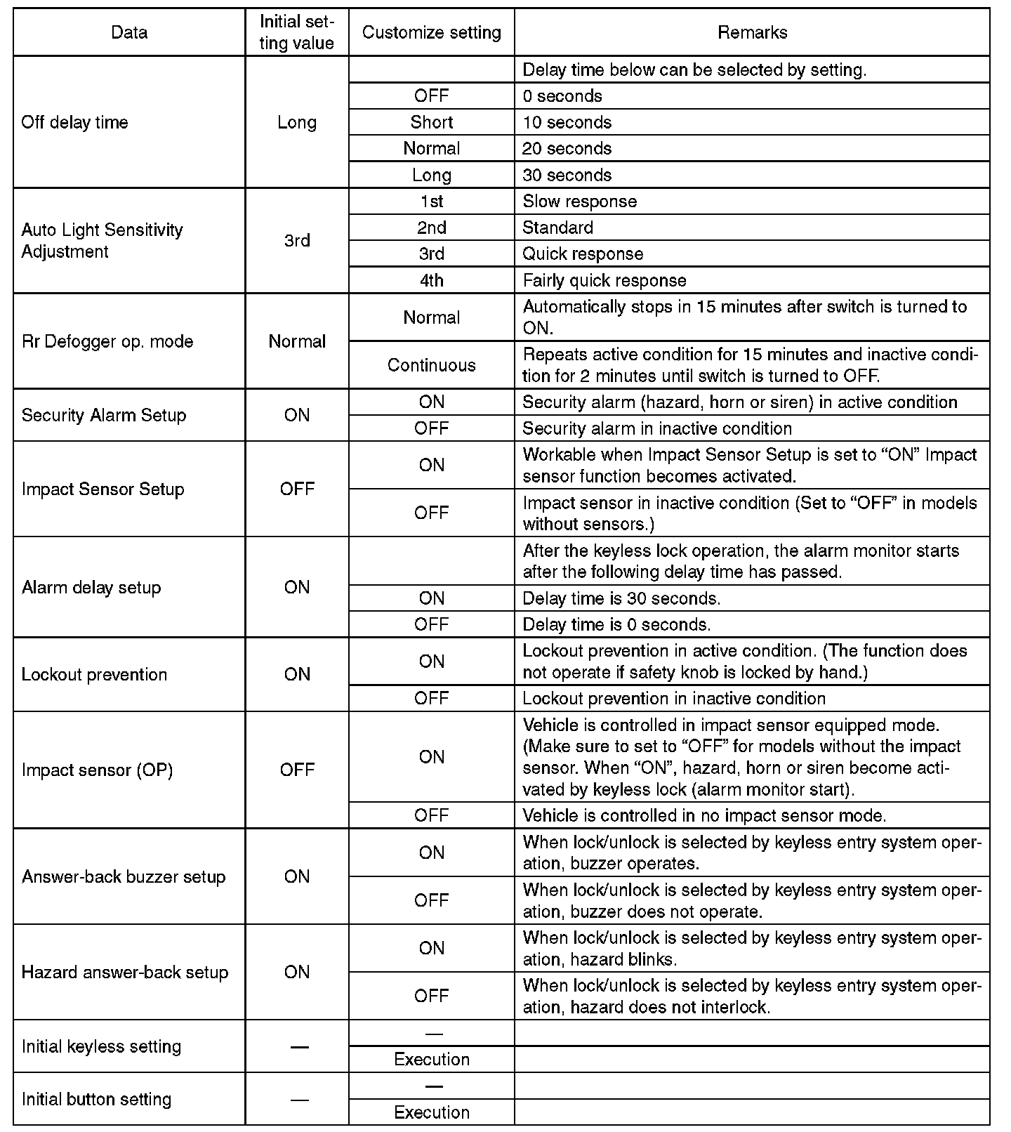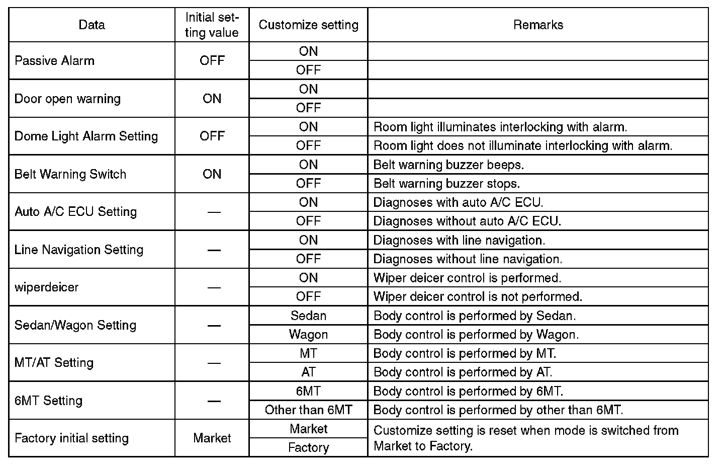 - Be sure not to change Factory initial setting except when installing a new body integrated unit.