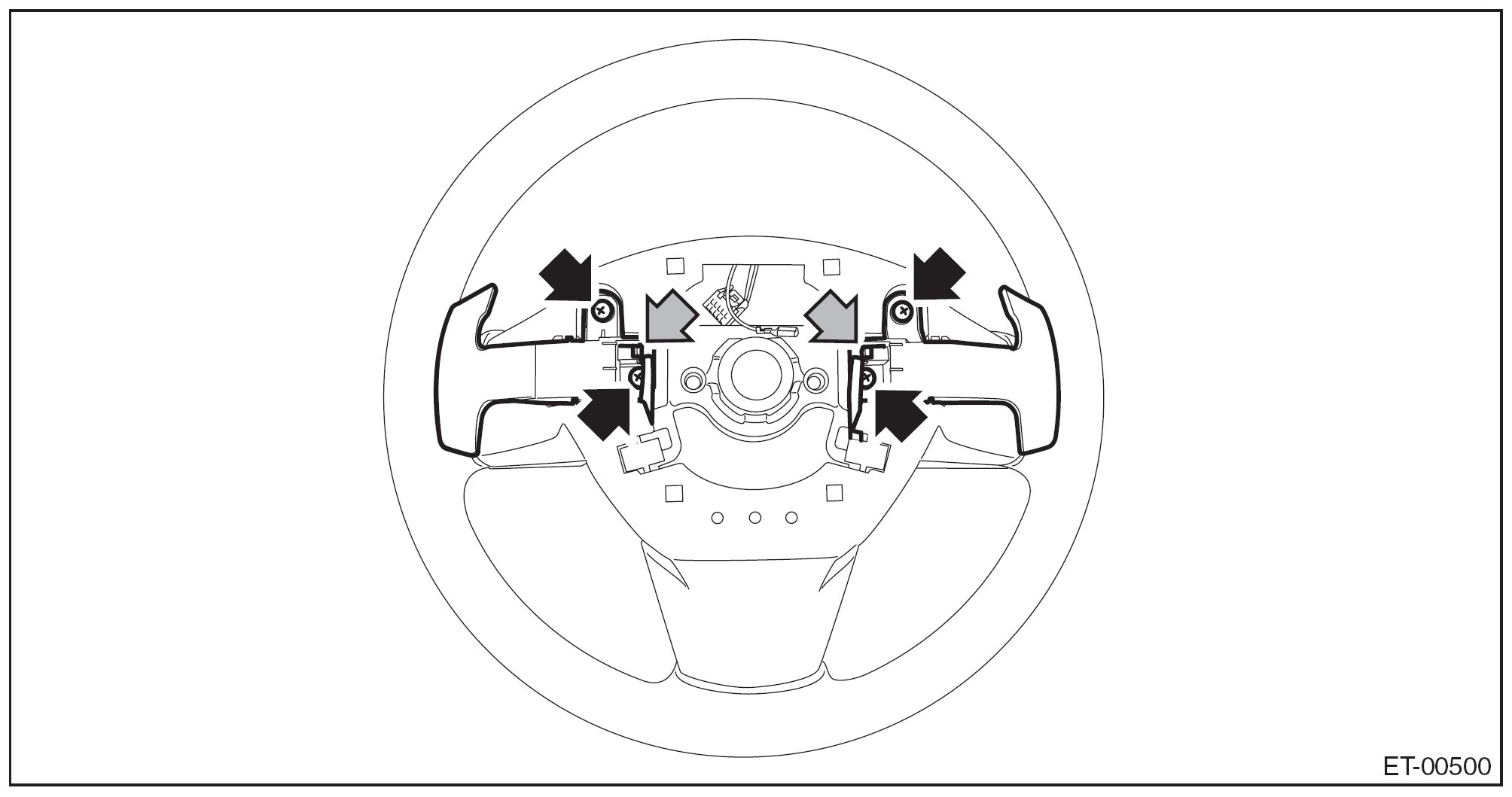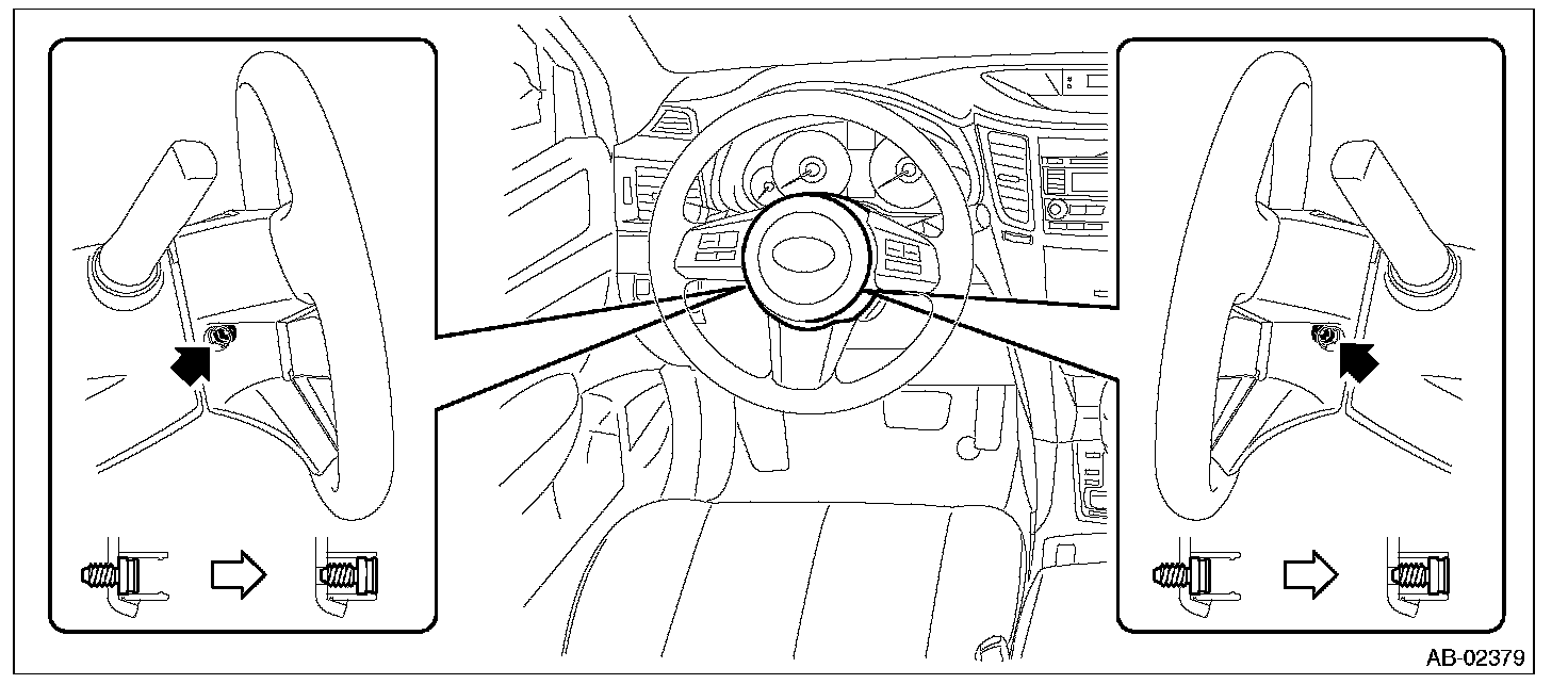 1. Loosen the TORX(R) bolts located on the sides of the steering wheel.