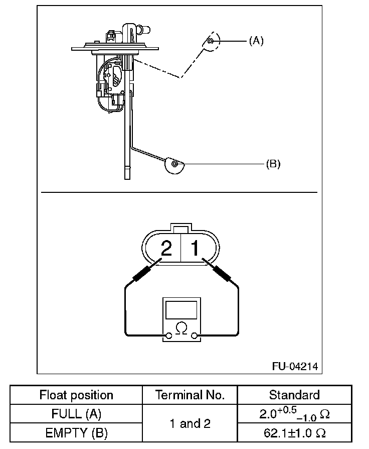 Measure the resistance between fuel sub level sensor terminals.