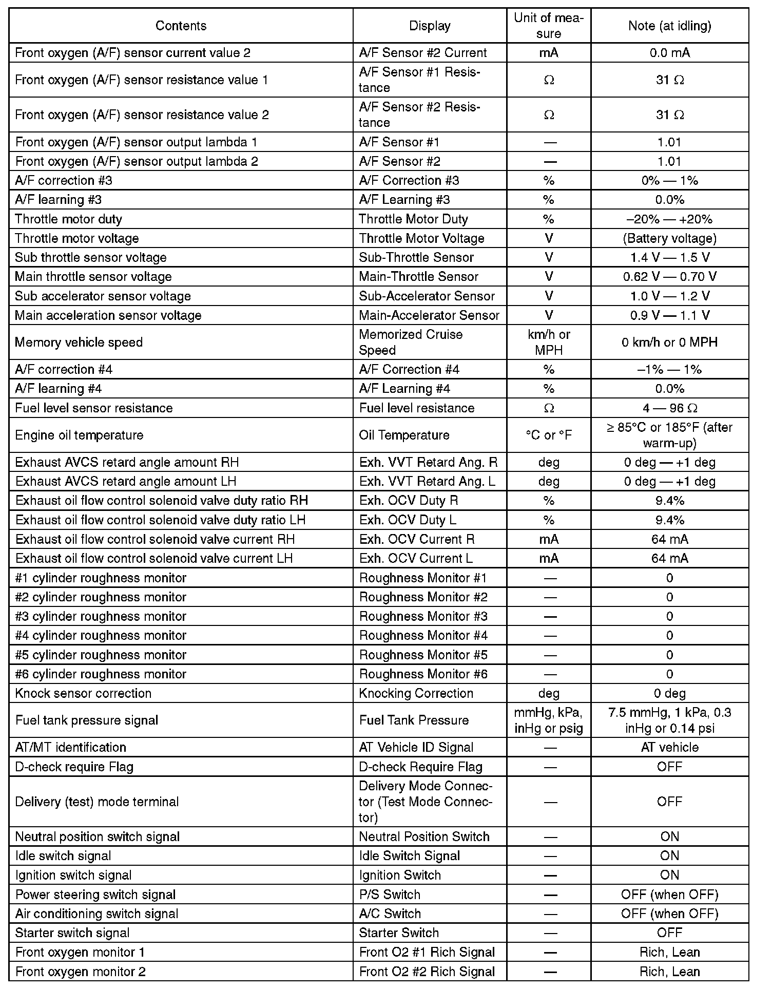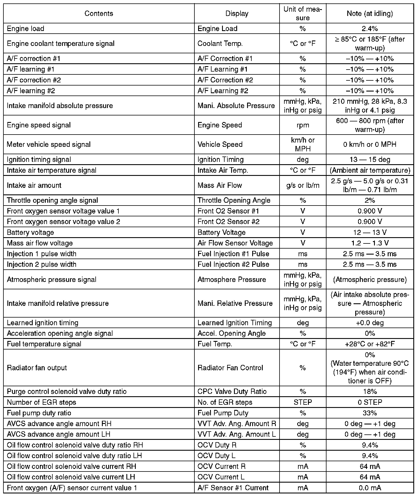 3. READ CURRENT DATA FOR ENGINE (OBD MODE)