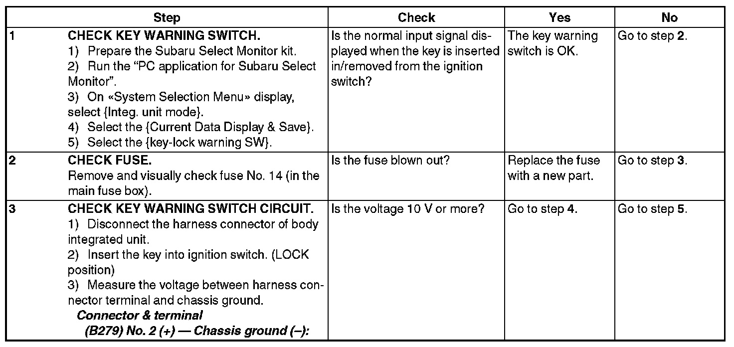 CHECK KEY WARNING SWITCH