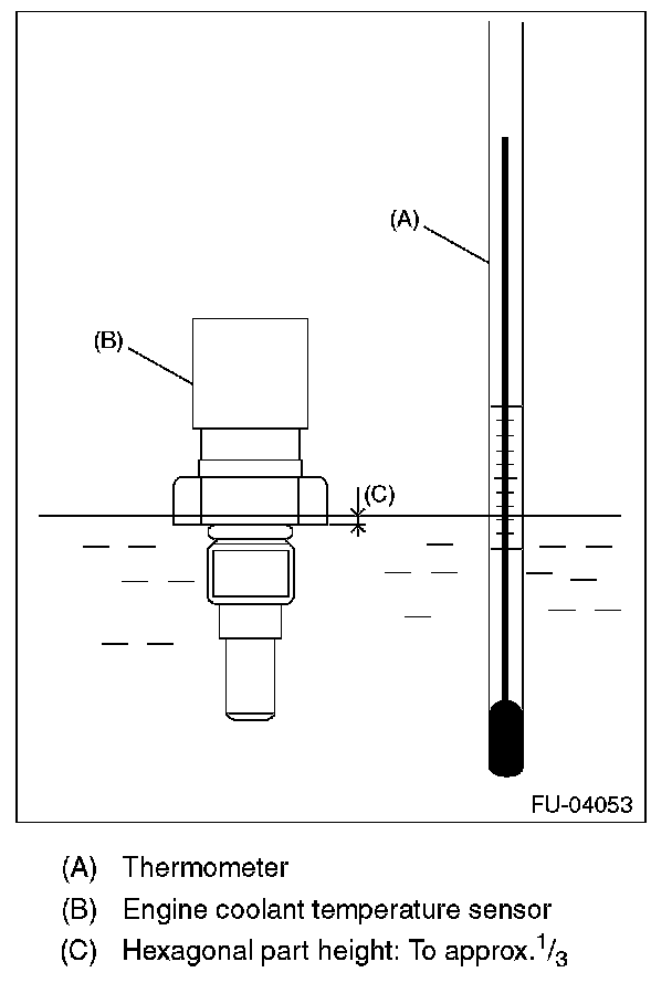 2. Immerse the engine coolant temperature sensor and a thermometer in water.