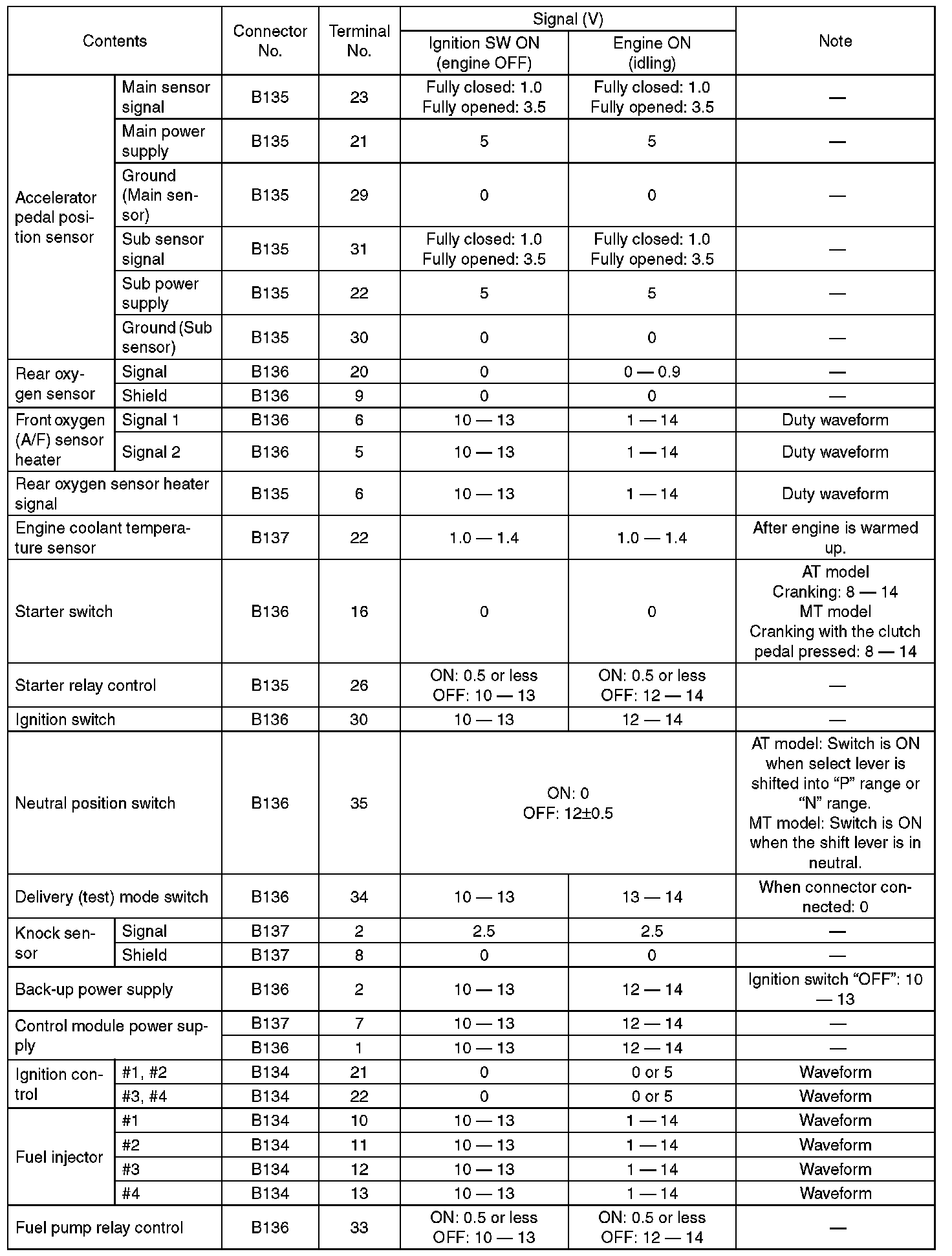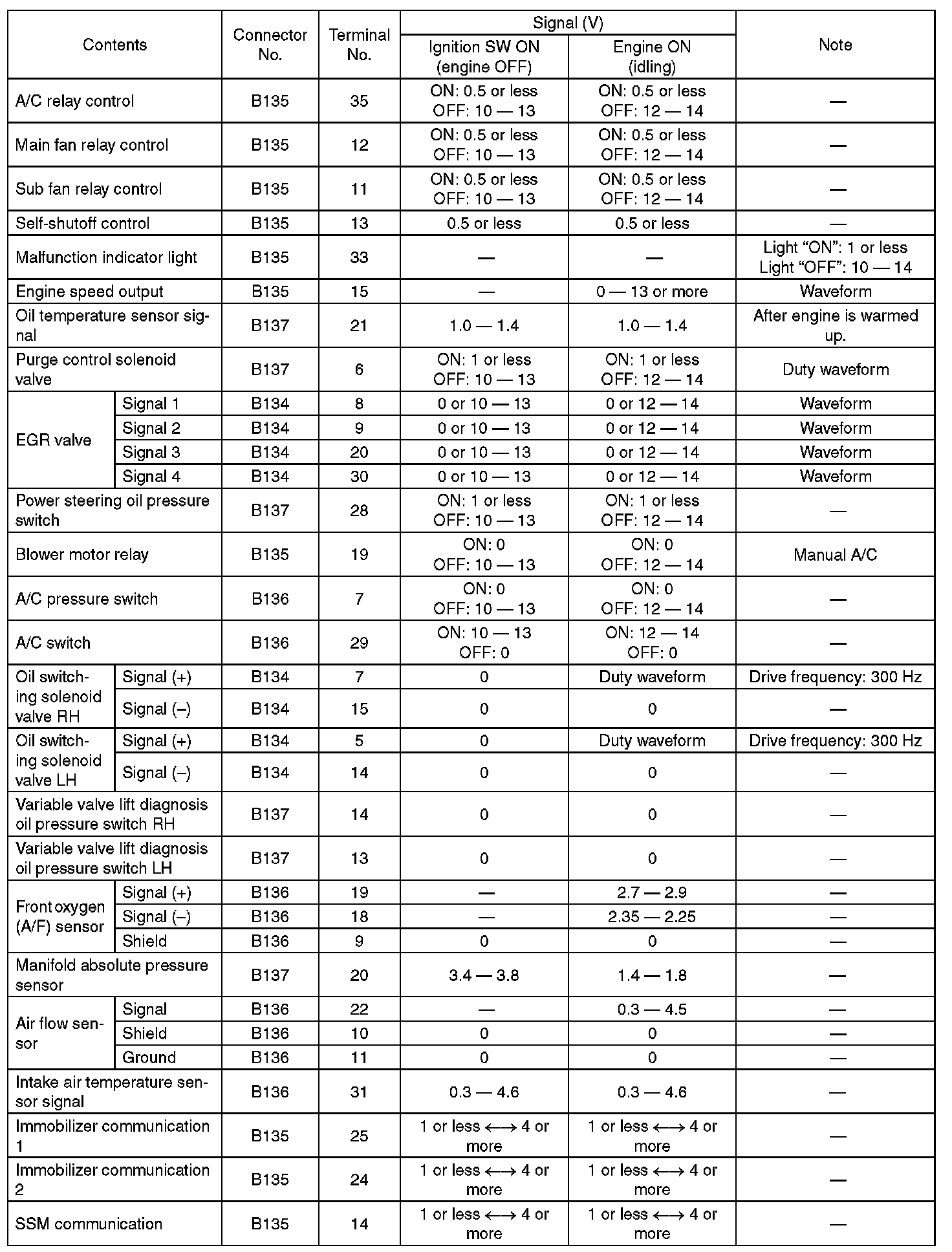 Engine Control Module (ECM) I/O Signal