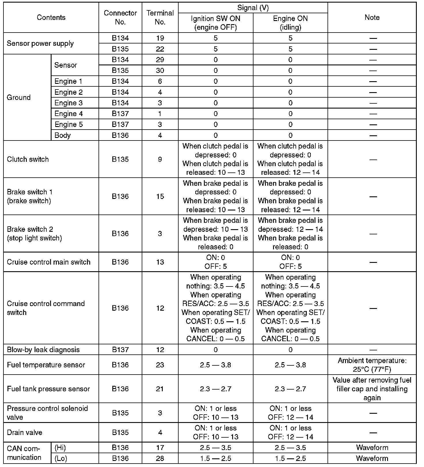 Pinout Values and Diagnostic Parameters
