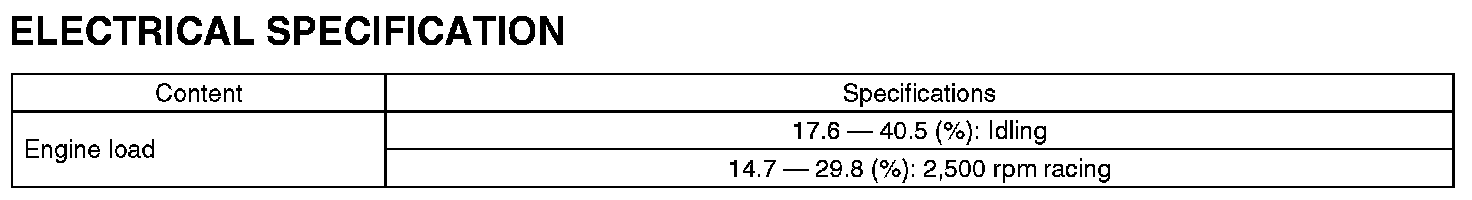 Engine Condition DataELECTRICAL SPECIFICATION