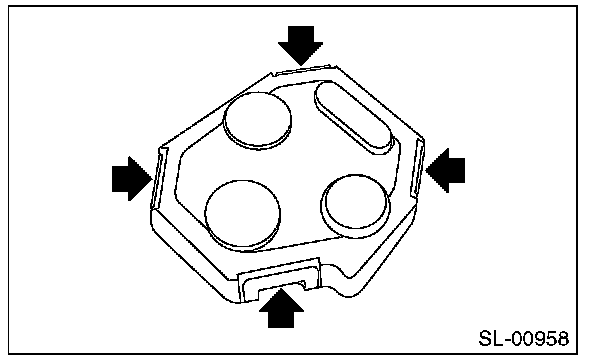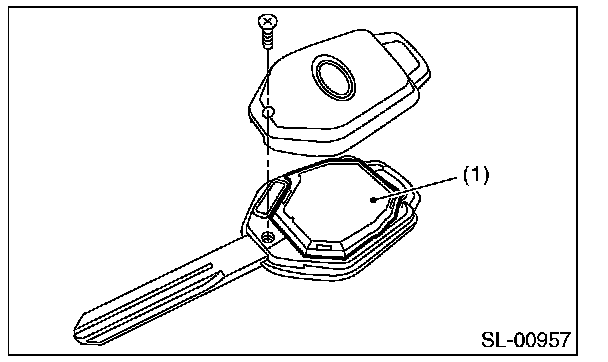 1. Disassemble the keyless transmitter, and take out the transmitter case (1).