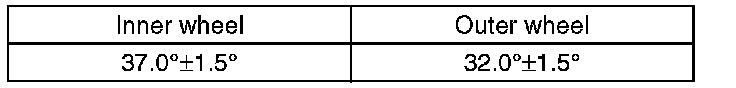 1) Check that the left and right wheel steering angles are within specification.