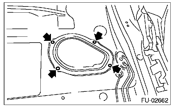 8. Remove the nuts securing the fuel sub level sensor upper plate to the fuel tank and remove the fuel sub level sensor upper plate.