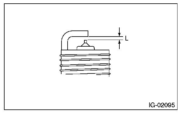 3. Using a nylon brush, etc., clean and remove the carbon or oxide deposits from the spark plug. If deposits are too stubborn, replace the spark plugs. After cleaning the spark plugs, check the spark plug gap "L" using a gap gauge. If it is not within the standard, replace the spark plug.