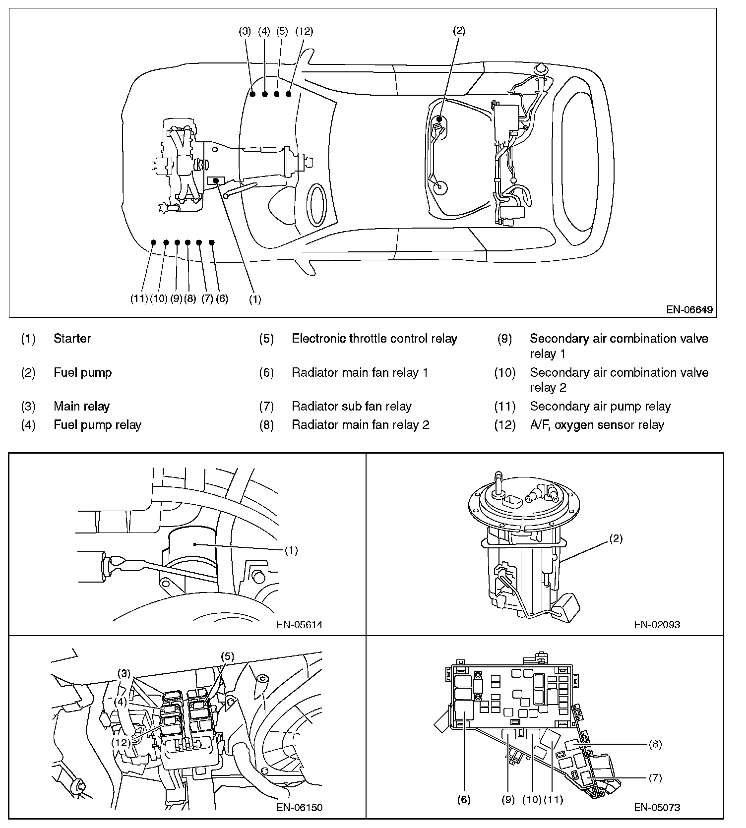 Main Relay (Computer/Fuel System): Locations