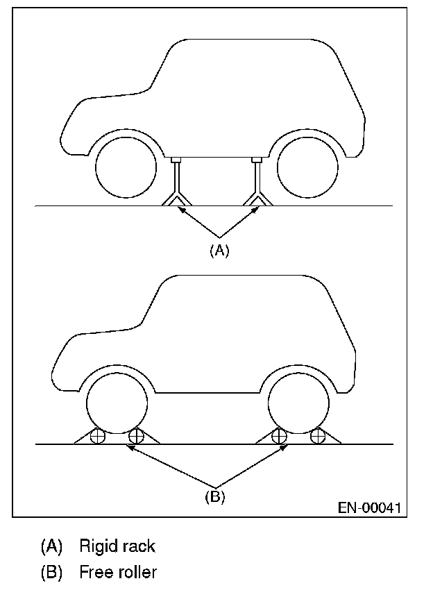 2. Lift up the vehicle using a garage jack and place it on rigid racks, or drive the vehicle onto free rollers.