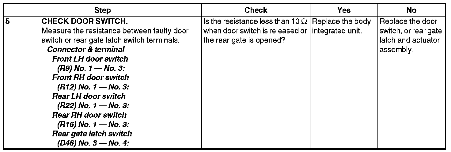 CHECK DOOR SWITCH