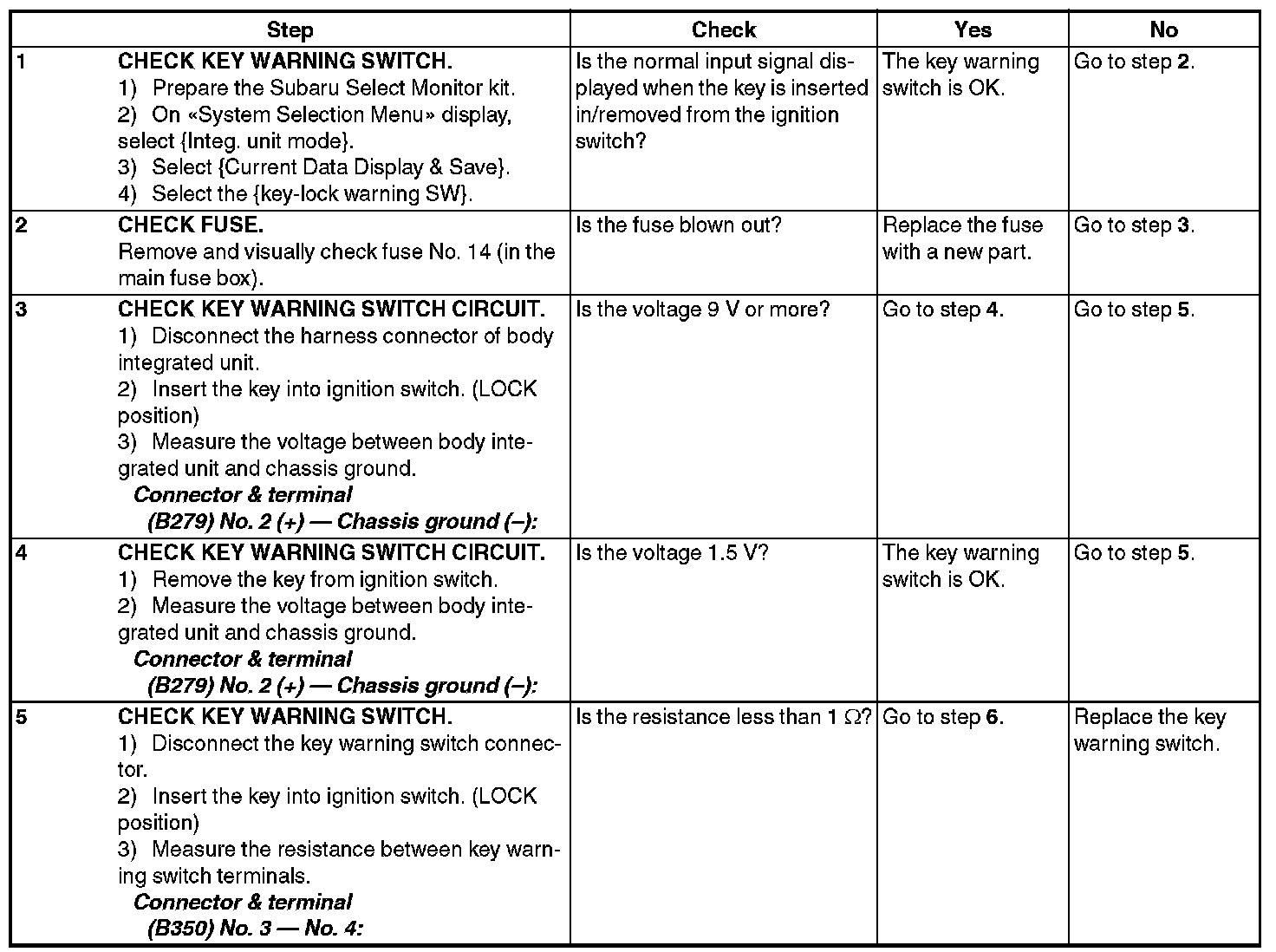 CHECK KEY WARNING SWITCH
