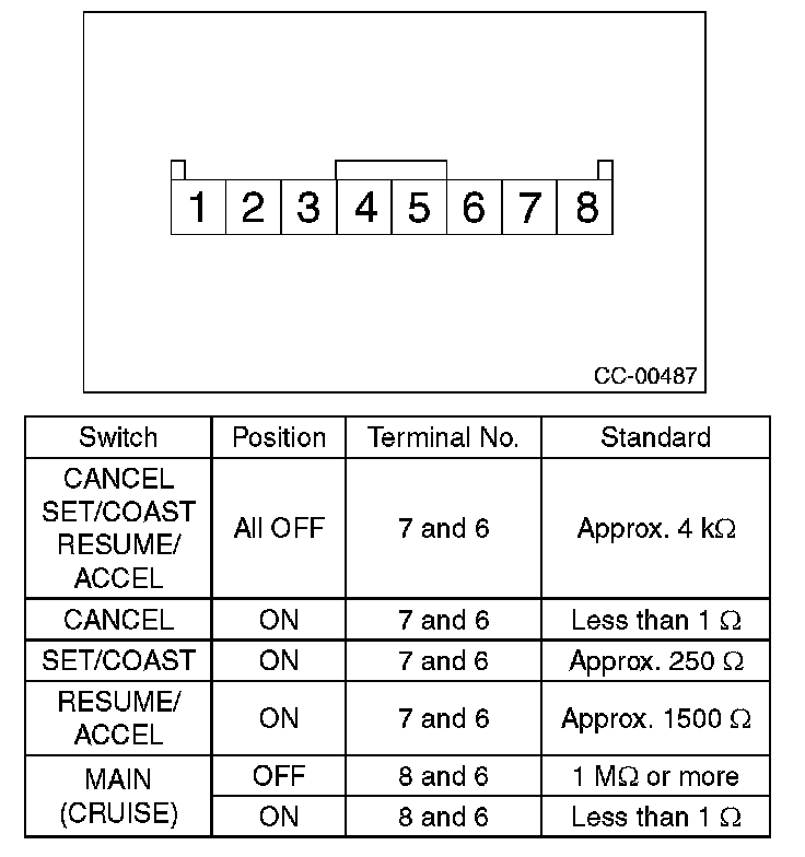 3. Replace the cruise control command switch if the inspection result is not within the standard value.