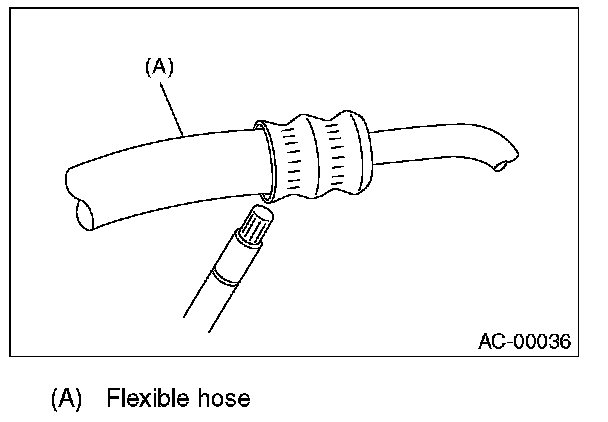 5. Disconnect the drain hose from the heater case, and check the hose end for at least 10 seconds. After the test is finished, reconnect the drain hose.