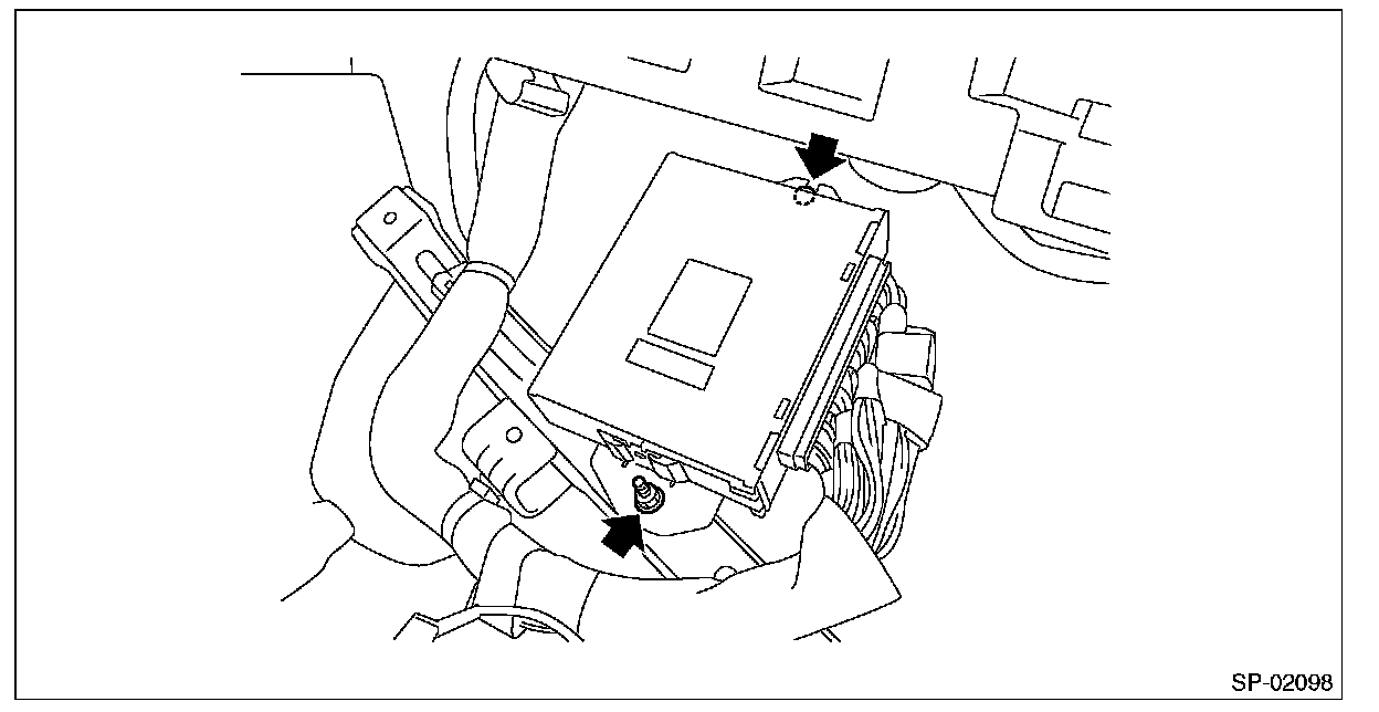 6. Remove the nuts and bolts which hold the ECM to the bracket.