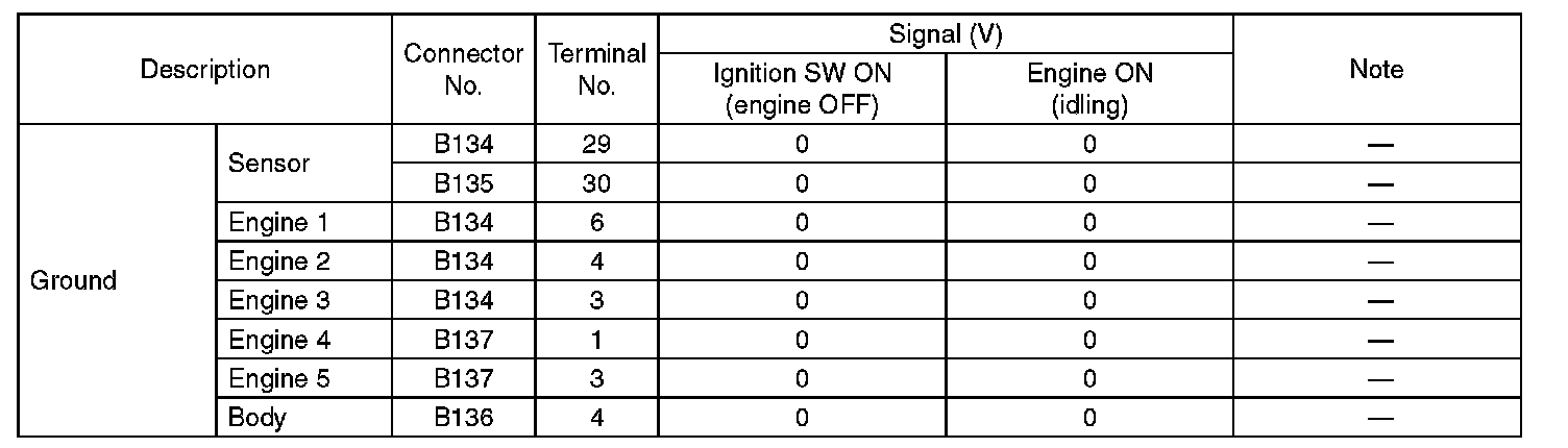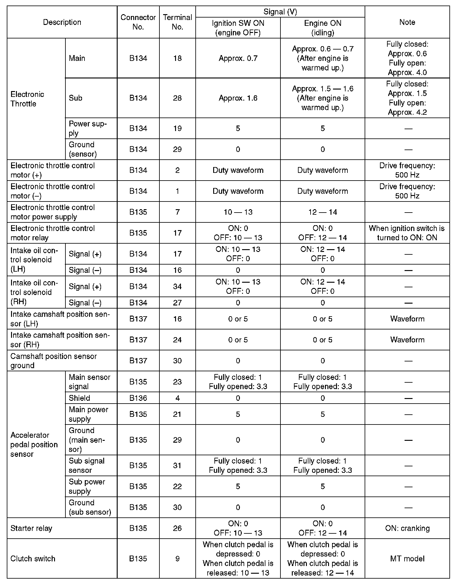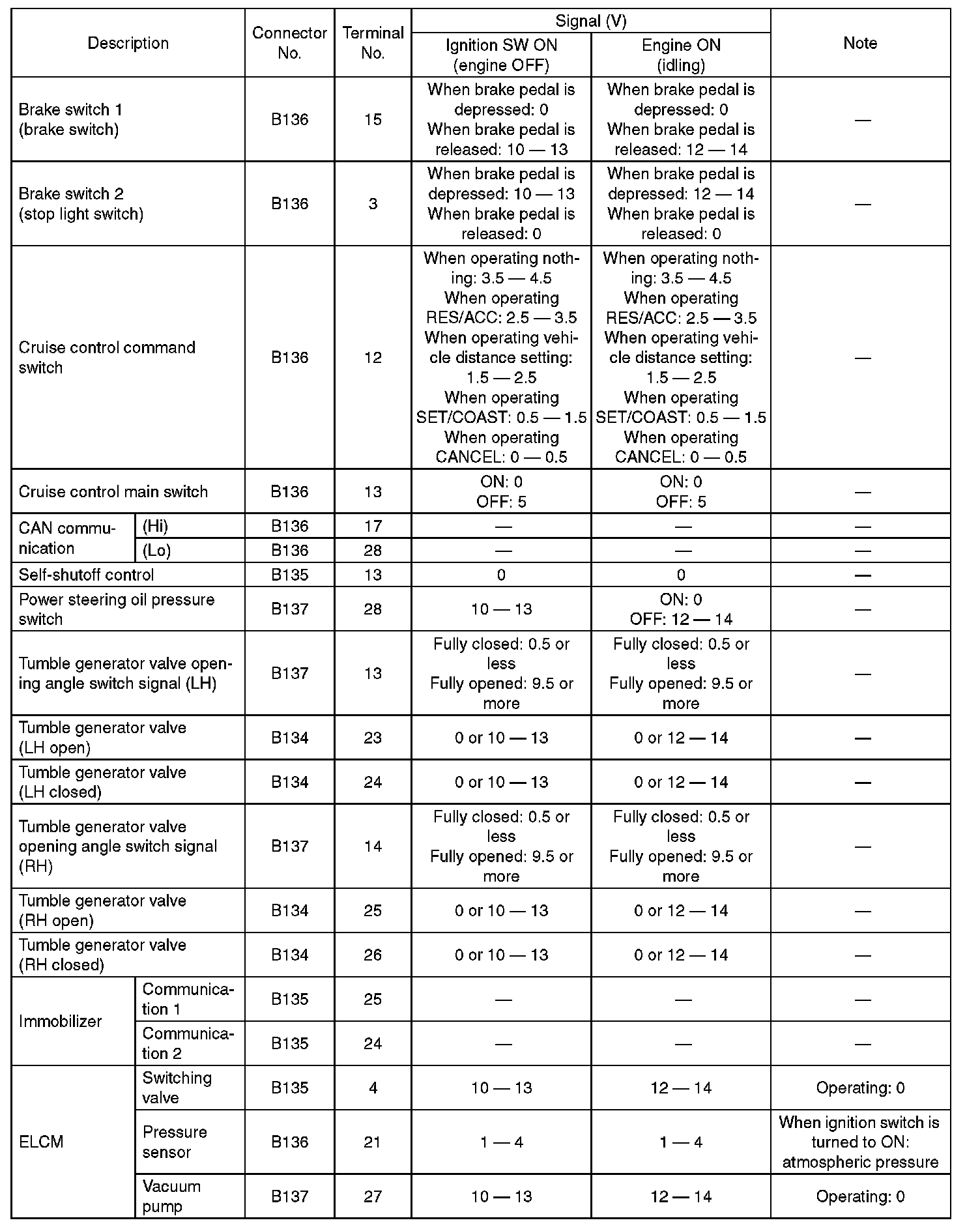 Engine Control Module (ECM) I/O SignalELECTRICAL SPECIFICATION