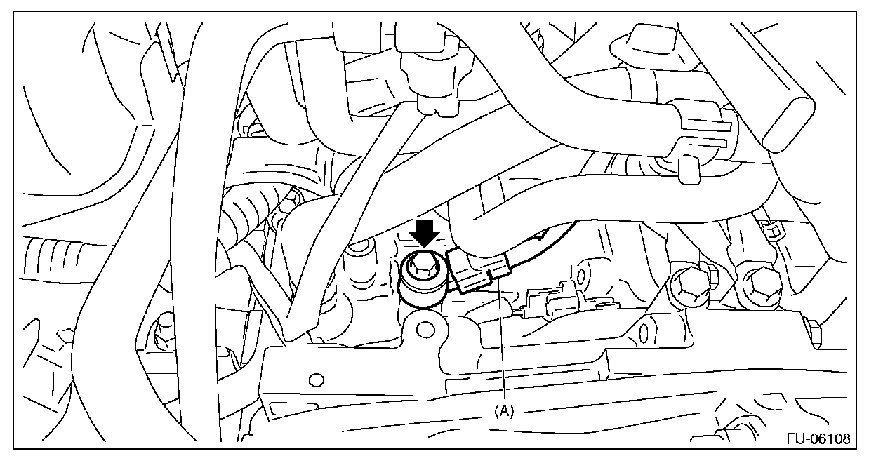 6. Disconnect the connector (A) from the knock sensor, and remove the knock sensor from the cylinder block.