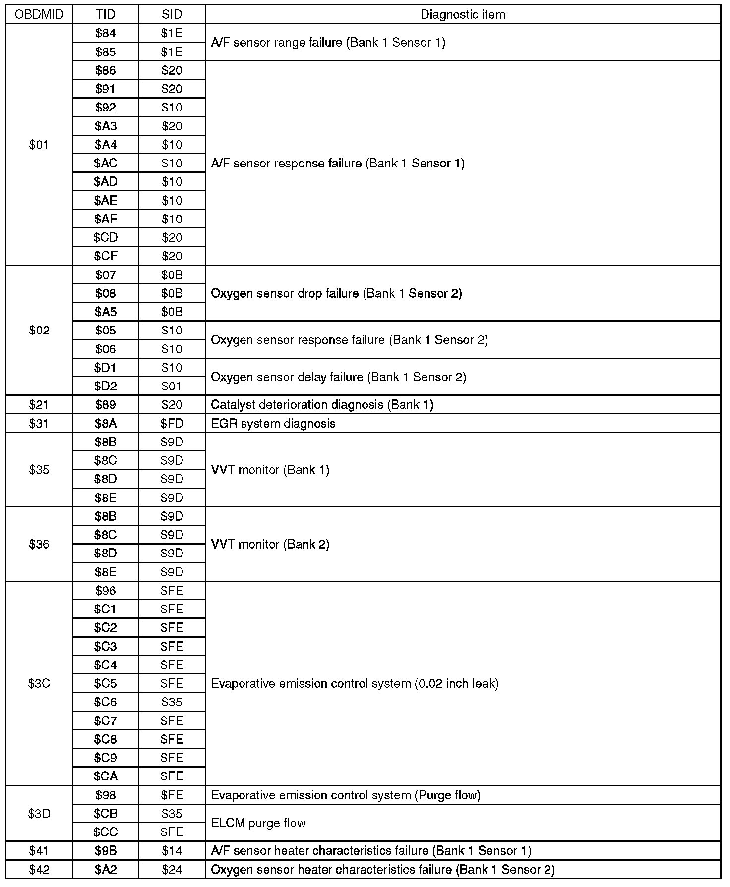 Refer to diagnostic value of troubleshooting and data of test limit indicated on the support data bit sequence table. A list of the support data is shown in the following table.