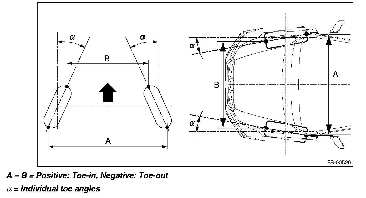 ^ Front toe-in, rear toe-in and front camber can be adjusted. Adjust if the value of toe-in or camber exceeds the tolerance range of the specification chart.