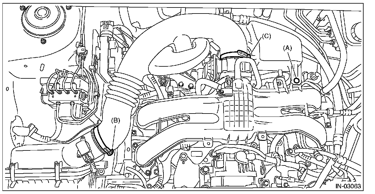 9. Loosen the clamp (C) which connects the air intake boot and throttle body.
