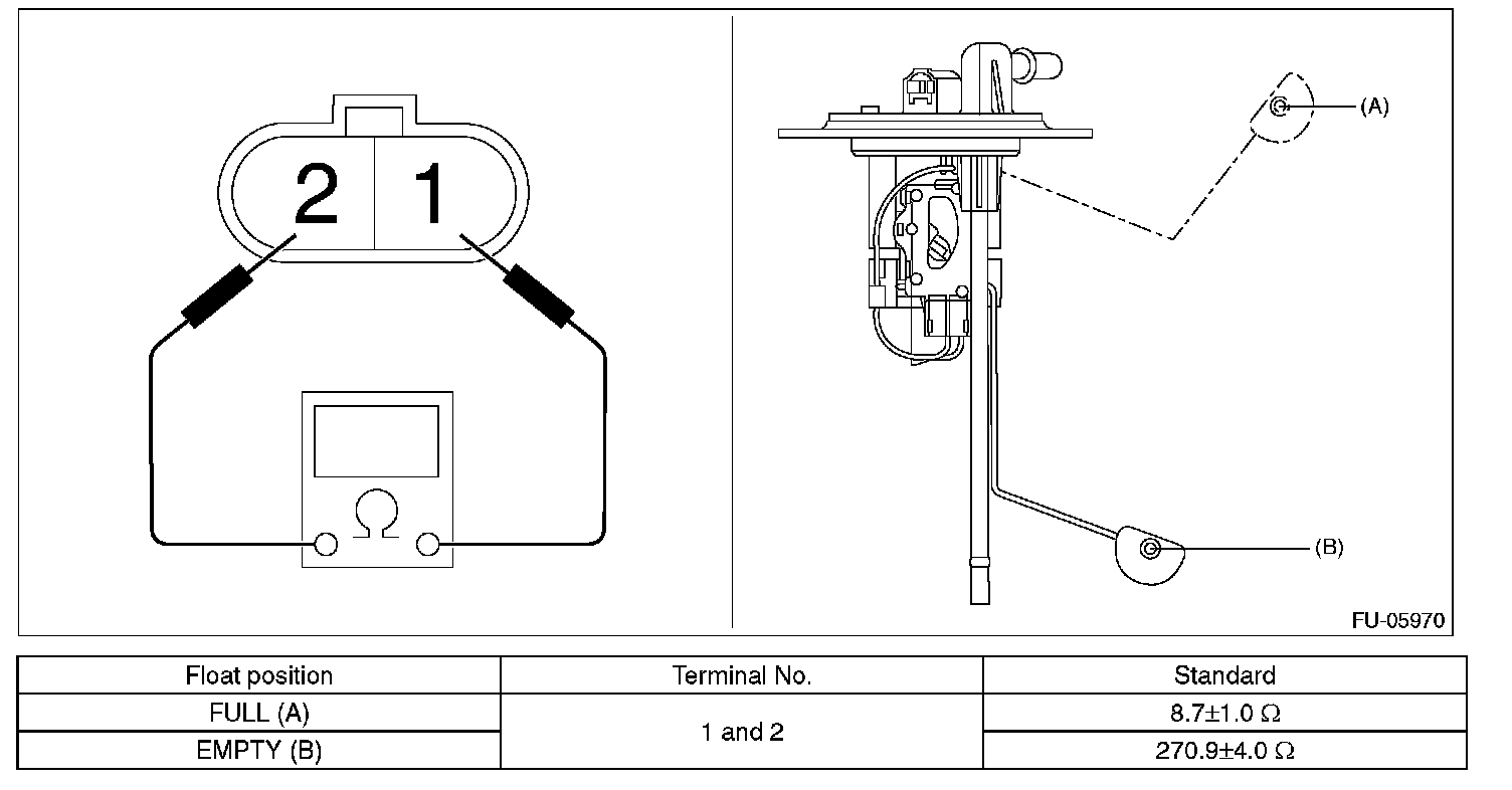 Measure the resistance between fuel sub level sensor terminals.