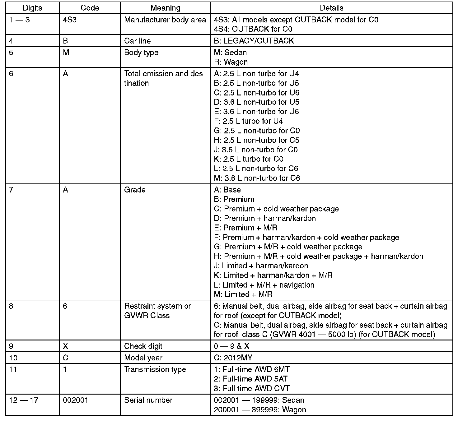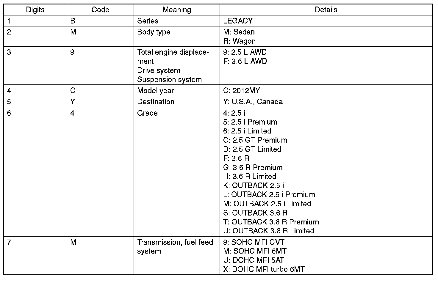 The meaning of the V.I.N. is as follows: