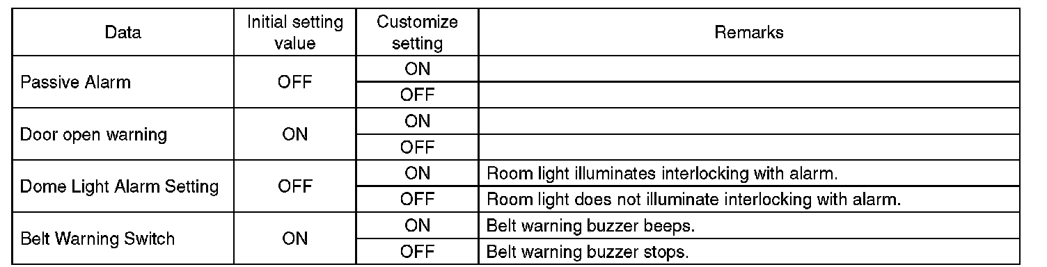 - Be sure not to change Factory initial setting except when installing a new body integrated unit.