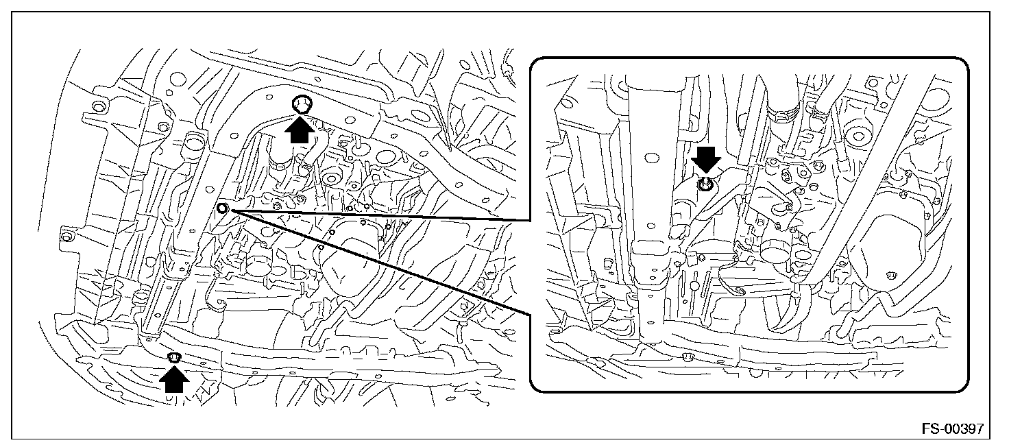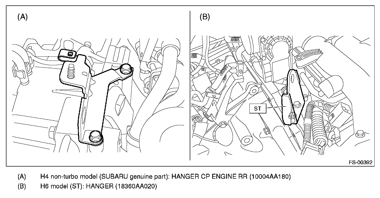 12) Replace the engine hanger installed on the engine with the SUBARU genuine engine hanger (H4 nonturbo model) or ST (H6 model).