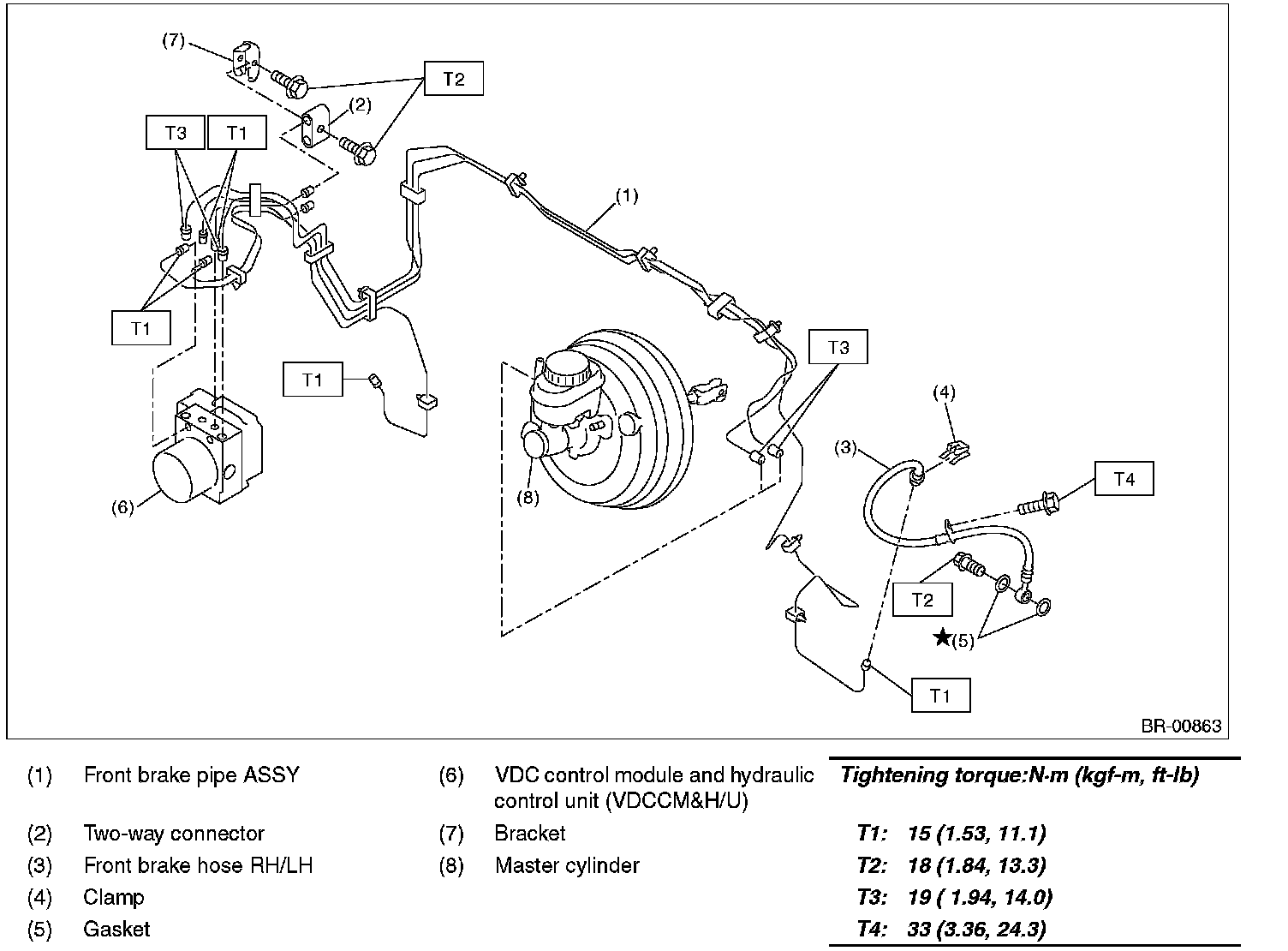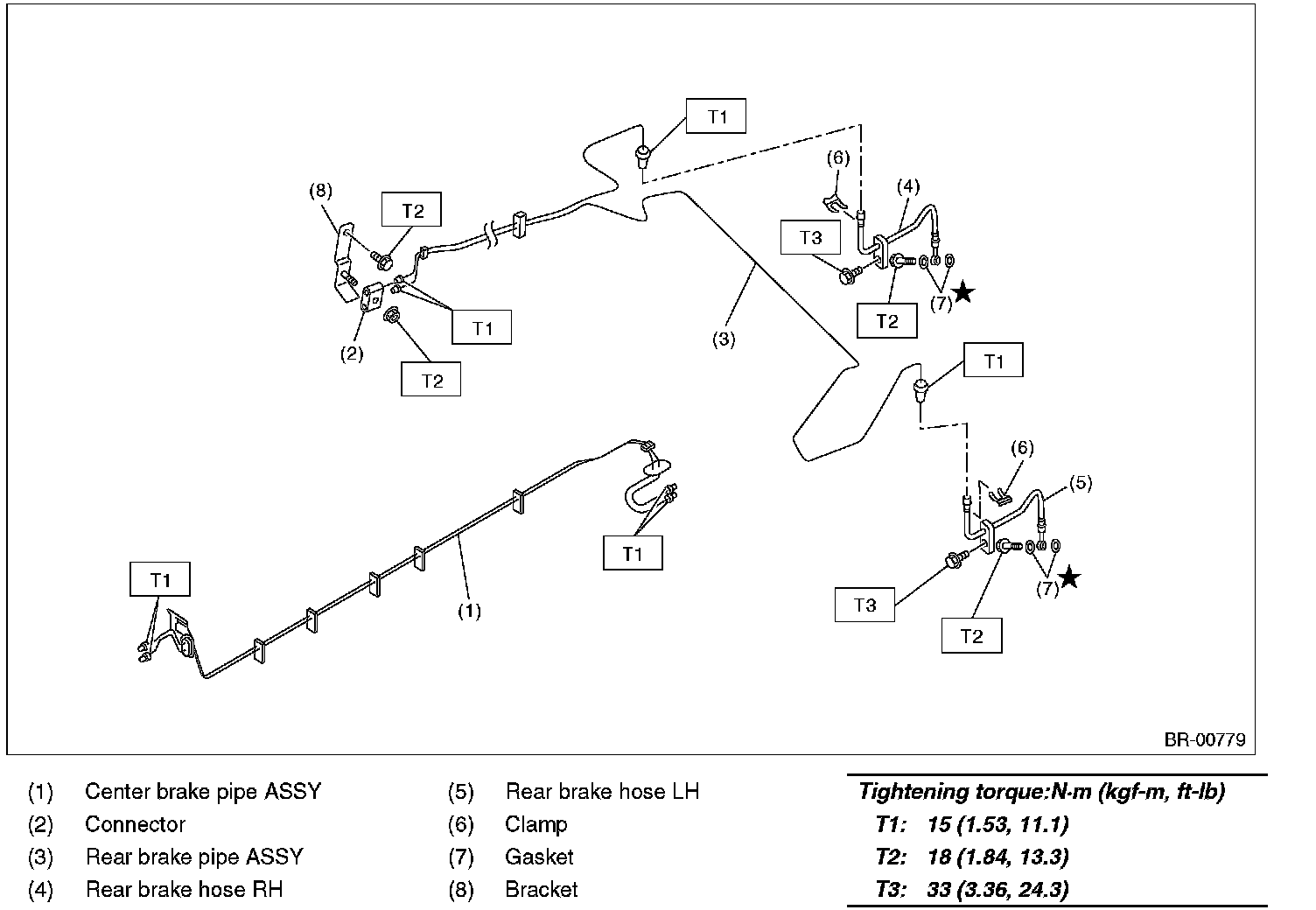 CENTER AND REAR BRAKE PIPES AND HOSES