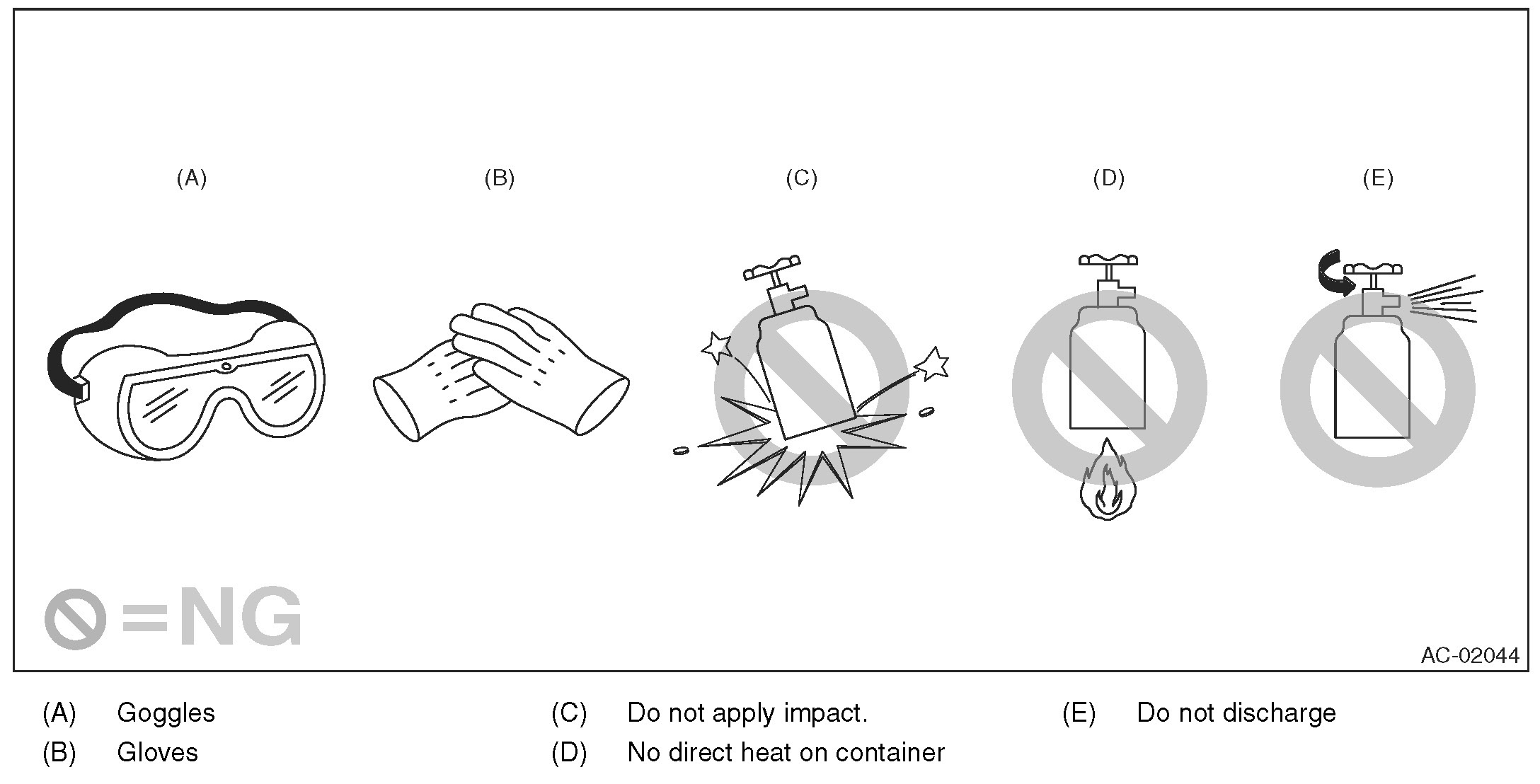 - Do not drop or impact a service can. (Observe the precautions and operation procedure described on the refrigerant can.)