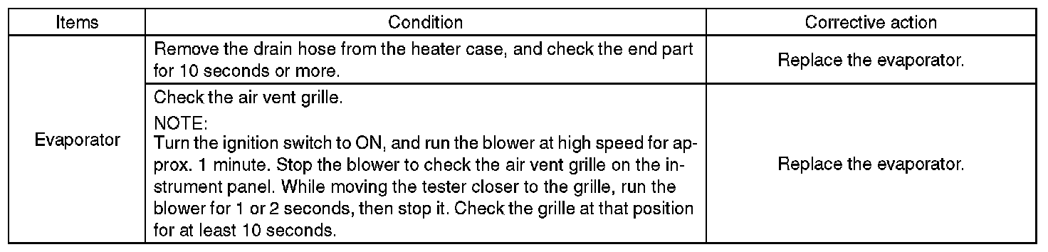3. Start the engine, operate the A/C system for approx. 10 minutes, and check that the high-pressure side indicates 0.69 MPa (7.0 kgf/sq.cm, 100 psi) or more.